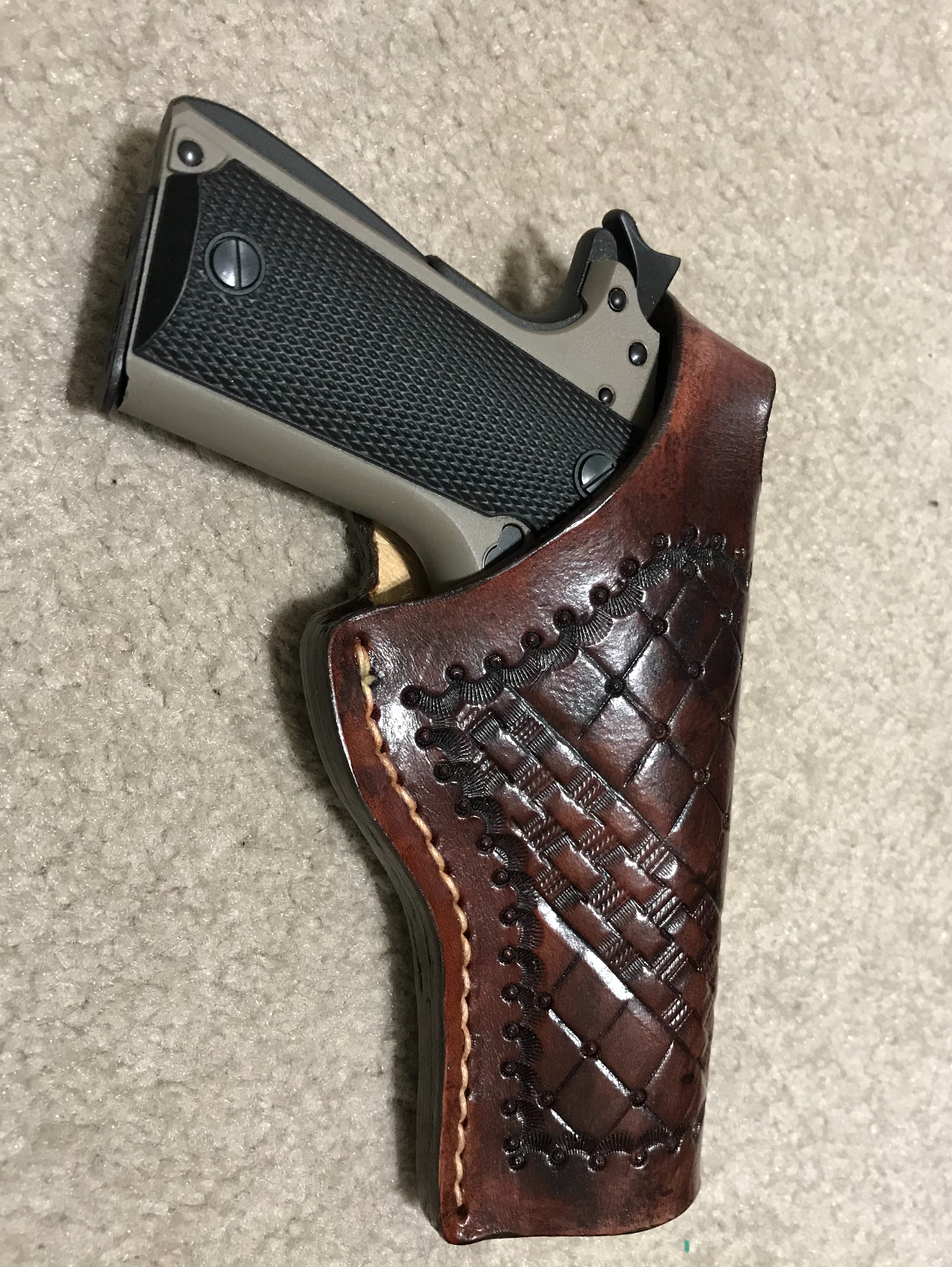 Outside the waistband for Browning 1911-22. Styled after WW2 US holsters, with modified belt loop for modern belts. From $80.